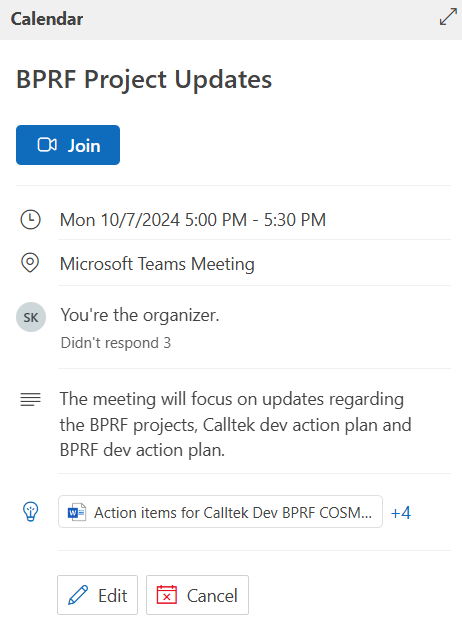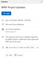 We also added BPRF dev team action items on the SharePoint sheet,