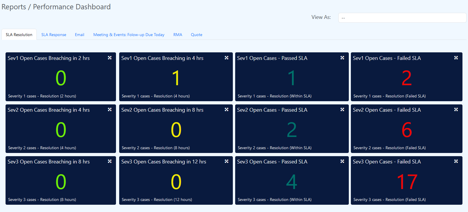 The additional tabs for RMA and Quote have been added to the SNA Performance Dashboard.